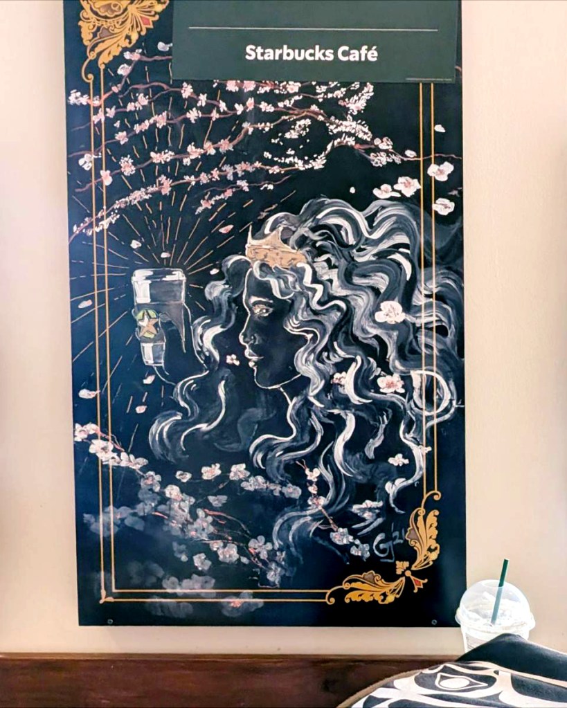 Cherry Blossom Maiden, 2021, Starbucks Coffee Shop on Government & Yates, Victoria BC