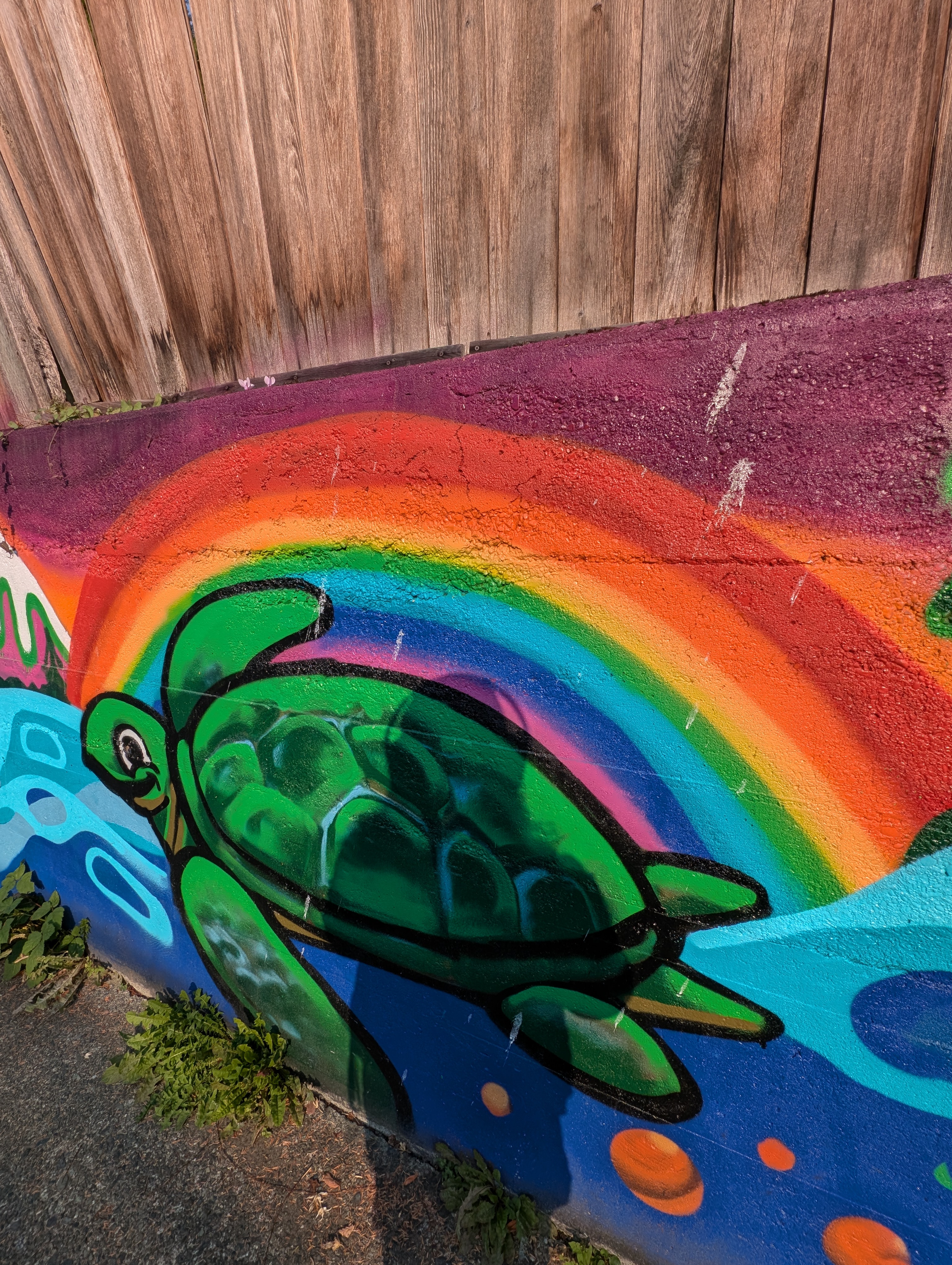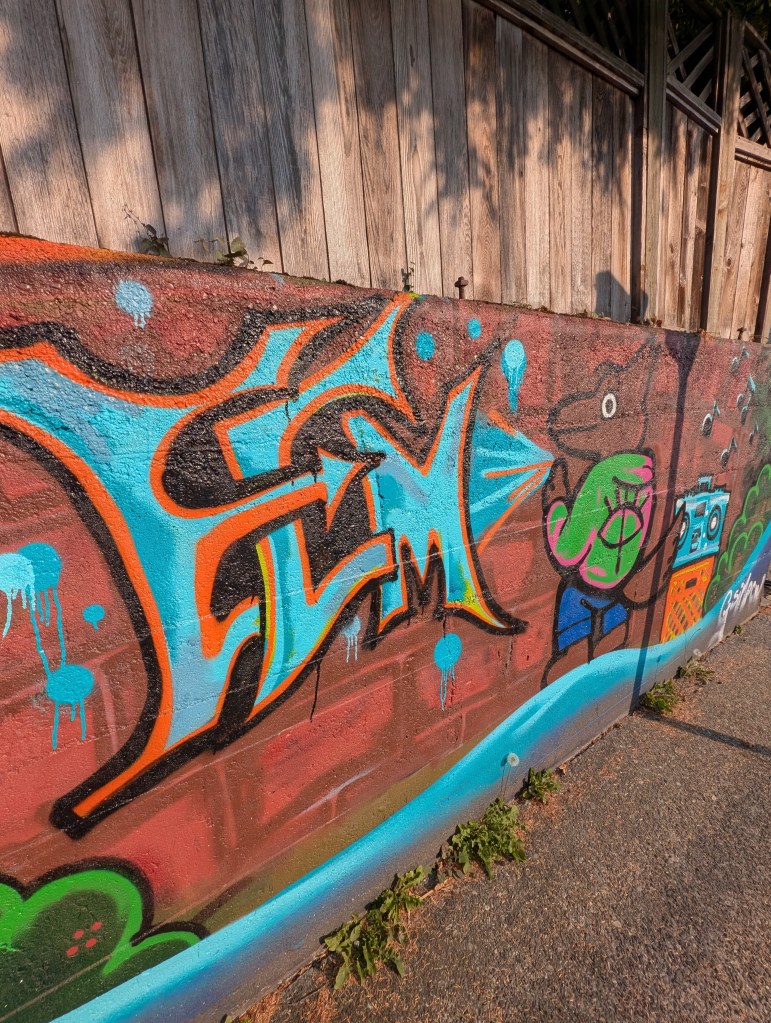 I was invited to participate in a group project alongside artists Alex Taylor-McCallum, Molly Long, and others during Esquimalt’s East West Mural Fest in 2024. This initiative aimed to deter ongoing vandalism in the residential area surrounding the Trackside Gallery.